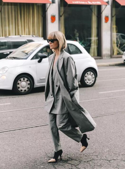 风衣与西装裤的搭配十分标新立异,再配上高跟鞋,整个人的气质也是不同凡响的。西装的特点是通勤干练,整个人穿着特别精神,搭配上风衣更有气质。同色系的大衣配上一套西服,整个气质优雅洒脱,走在街上便是秋日里的一道风景!