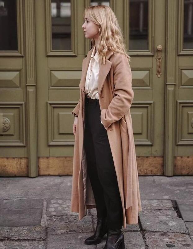 同色系的风衣和西装裤搭配,让人眼前一亮,看上去素雅却不庸俗,平添了一种独特的美!在小编看来,这样的穿搭适合追求气场的白领,在职业场合也能展现自己的魅力!