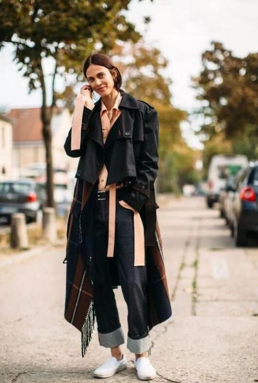 风衣与牛仔裤,再配上小皮鞋或者小白鞋也是广受大众认可穿搭方式。这样的穿搭,既适合上班族,也适合平常穿搭随性的小姐姐,给人一种干练大方的感觉,走路带风说的就是这样的气质了吧!这样的穿着既讲究有不张扬,可以将自己的气质和魅力完美的展现出来,这便是很多小姐姐理想的穿搭了吧!