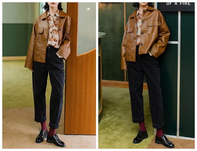 皮衣外套简直就是专为穿搭造型增加加倍的气场,与衬衫+灯芯绒裤子搭配,呈现出复古帅气的风格,出众又吸睛,这无处安放的魅力,可谓吸睛十足,搭配小皮鞋,更是一种帅气气质的存在,不仅是冬季的流行穿搭方式,而且这种穿搭风格还很撩汉呢~