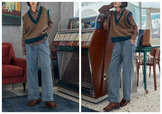元气十足的冬季穿搭,衬衫+牛仔裤+马甲的流行穿搭,时髦好看满分,碎花的衬衫+马甲的陪衬,叠穿看起来似乎让整体造型更加亮眼,柔和而美好的色调,正适合这个寒冷的冬季,怎么看都怎么美,精致又显得很有复古感,完美得一时之间说不出赞美的词呢!