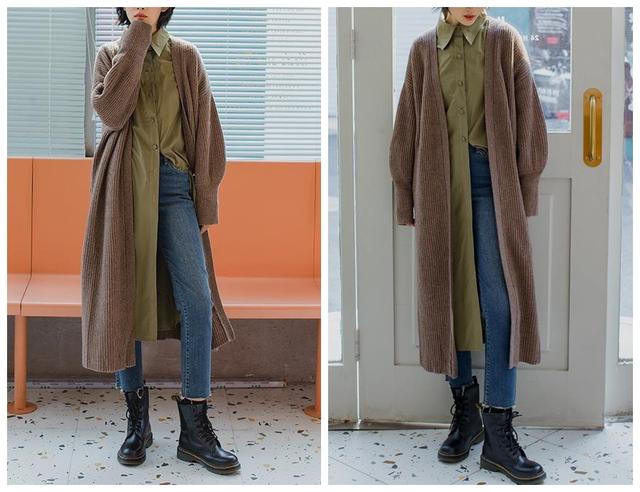 针织开衫想要搭配得好,内搭也是很有讲究的,选择长款的衬衫作为内搭,展现一番独特的魅力,整体以主打简约的穿搭风格,打造出流行的冬季造型,从颜色上摄入减龄的色调,不但显得青春还很显大方感,让你行走在街上,都是那满满的回头率!冬季流行女装穿搭图片