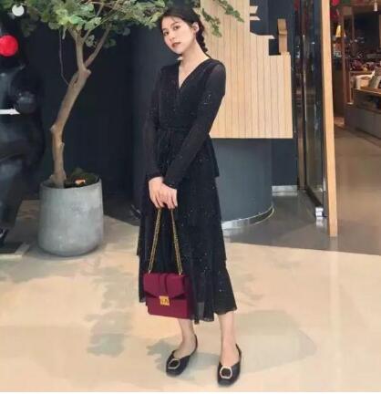 这条裙子可以说就是一条仙女裙了!裙子整体是黑色,裙摆采用的是蛋糕裙的设计,远看这条裙子好像没什么特别的,但是你近看的话就会发现,这条裙子上面有小亮片,尤其是在有光的情况下,裙子就会发出闪闪的光来,穿上这条裙子你就是一个闪闪发光的小仙女。