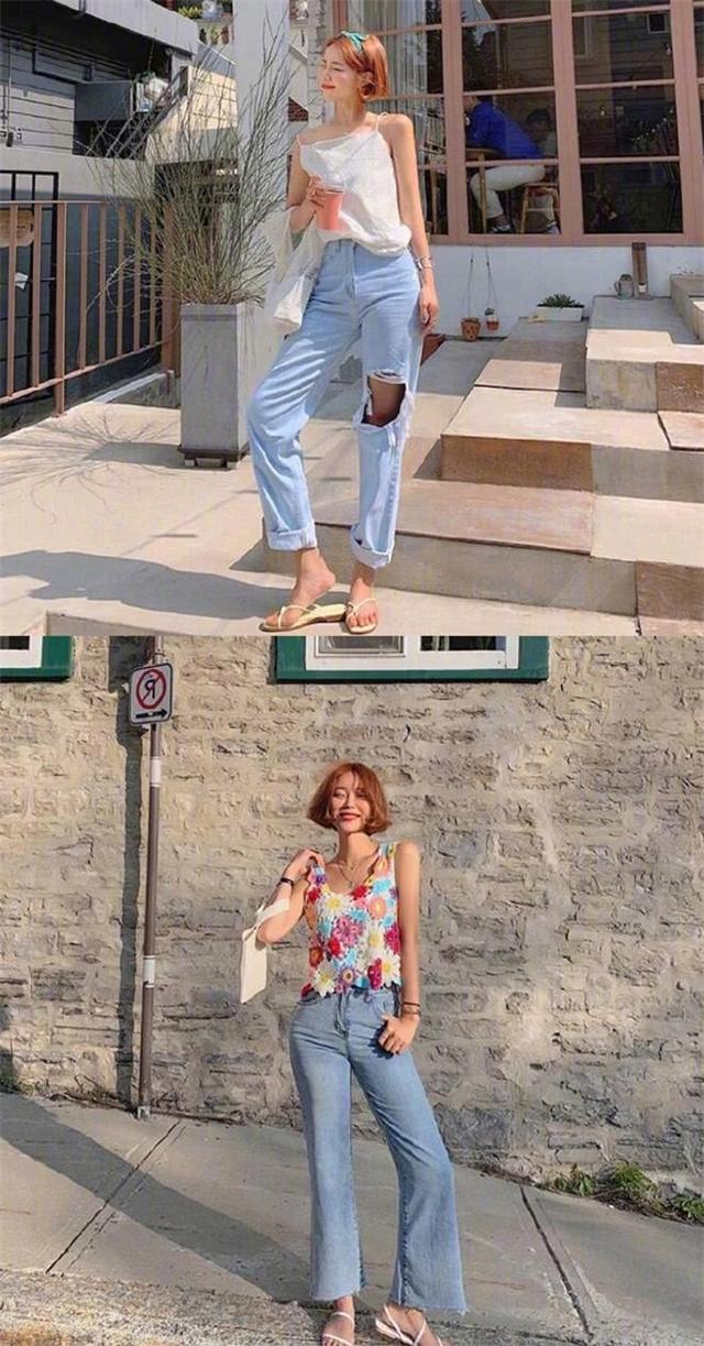 牛仔裤是最经典的穿搭单品,也是最百搭的款式。像这位小姐姐就是上身穿了一件彩色的吊带小背心,上面印着各种颜色的花朵,显的更加的青春靓丽,有一种小清新的感觉。而且吊带低领的设计,能更好的显露出锁骨来,特别适合上身比较偏瘦的妹子,在带一条项链作为装饰,真的是美翻了呢。下身在搭配一条牛仔裤,学风满满,想必你就是校园中行走的焦点呢。