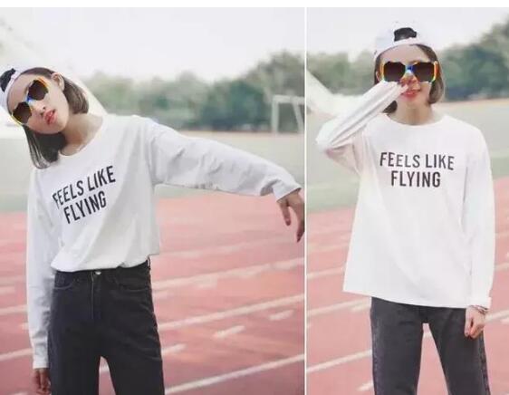 黑色和白色可以说是时尚界的百搭利器了,无论怎么穿都不会错。黑色裤子不用多说,低调又时髦,色调暗,十分显瘦。搭配色调完全相反的白色长袖T恤,让人的视觉注意力集中在上半身,而不会过多关注腿部。成功达到了遮肉的目的。