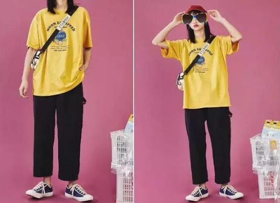 黑色毋庸置疑属于暗色,同时也是是百搭又显瘦的万能颜色,黑色裤子更是给人一种利落又帅气的感觉。上身搭配一件色调饱和度高的明黄色,配上极具设计感的趣味印花,非常夺人眼球。上明下暗的搭配法则,是粗腿mm们的一个好选择。