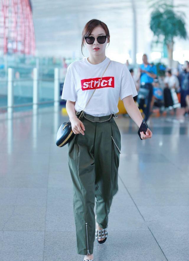 身材超好的马甲线女王袁姗姗也对时髦的纸袋裤爱的深沉,白色字母印花T恤轻松时尚,搭配墨绿色的纸袋裤,色彩之间的碰撞产生了奇妙的化学反应,纸袋裤的高腰线设计能够凸显小蛮腰,谁穿谁都是一米八大长腿!