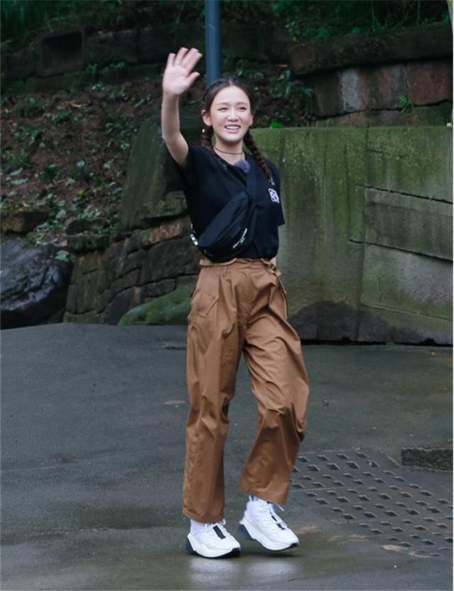 要说宽松休闲的纸袋裤与什么最配,那么T恤绝对要拥有姓名,不老女神陈乔恩之前就利用过这一套穿搭,黑色宽松T恤扎进深咖色的纸袋裤里,满满的时尚感。由于黑色的T恤本身就比较的休闲随性,挺阔的纸袋裤又为整体增添了高级感,小粗腿统统被藏了起来,整体的搭配简单率性,很适合日常穿搭!