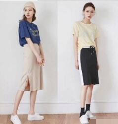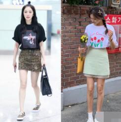 半身短裙有种一种魔力,能与不同的单品搭配起来!藏青色的字母上衣加上杏色半身裙,微微开叉的款式,修饰腿部线条很是乖巧,整体颜色非常的夏天,穿上万能小白鞋便可以随意出街!