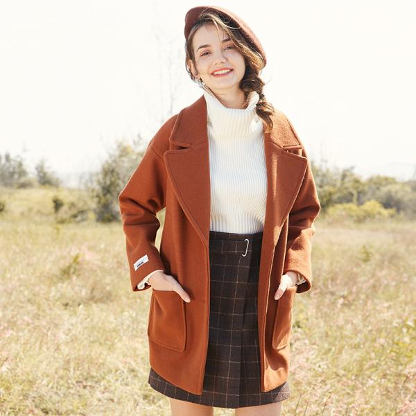 焦糖色外套加上纯色毛衣,下身搭配一条短裙是小个子女生的搭配首选。A字短裙拉长下半身比例,焦糖色外套为减轻整体风格的沉闷感,配上秋冬暖系橘色妆容在寒冷的冬天也能感受到暖阳的温暖。