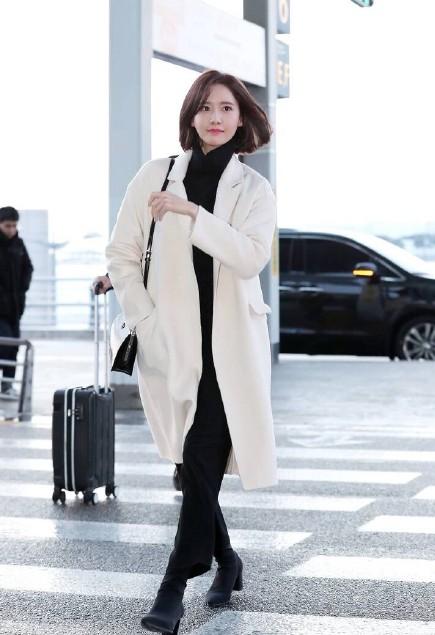 像允儿这样整体内搭黑色的基础上再加上一件白色大衣显得简洁时尚又不失温度,机场私人穿搭也显得街拍范十足,大方又不会过于沉闷,是学生党和上班族。