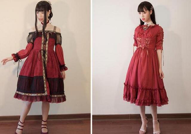 宫廷风的洛丽塔有着欧洲式的浪漫风情在里面,特别是色泽的处理,及其喜爱采用深沉但柔和的颜色,展现出女生的柔美。所以经常可见葡萄酒红以及灰蓝色这种古典的布料,所以看上展现出一种略有些成熟的风味。