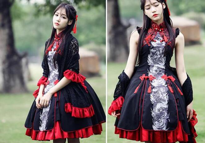 中华风洛丽塔外形十分得体,如同我们中国文化留下的传统精神。女装搭配。混入旗袍,精美刺绣,以及寓意吉祥的流苏吊饰,不同其它的服饰,因为与国粹相结合,所以多了一丝灵气的味道,简直是为年轻的女孩保留住青春的稚嫩。
