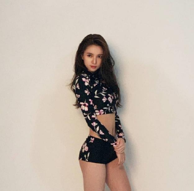这一套的搭配太太热辣了,看起来性感、大胆、妩媚又不失青春的活力与朝气,非常的撩人的搭配~紧身款的短款印花黑色短衫+黑色短裤,修身的款式将女孩子的好身材展现的淋漓尽致,细腰、翘臀、美腿,一切看起来是那么的美好迷人~