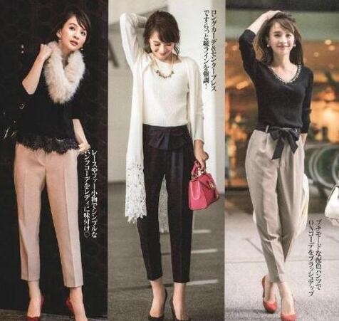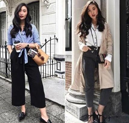 九分裤不仅显瘦还显高,九分裤的长裤一般在脚踝骨的位置,脚踝骨也是腿部最为纤细的地方,但是九分裤想要显高,最重要的就是鞋子不能过于复杂,比如超复杂的绑带鞋,不仅不显高,而且很容易拉低身材,不妨尝试一些浅口鞋,比如简约的尖头鞋或者尖头高跟鞋都是不错的,显高显瘦。