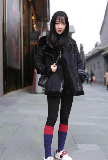对于秋冬季,最必不可少的想必就是打底裤了。简约的款式,经典的色系,不管搭配什么衣服都显得相当自然,而且最主要的一点就是几乎所有人都能轻松驾驭哦!重新划分的腿部线条,起到了延长视觉的效果,妥妥的显腿长啊!保暖度也是杠杠滴,完全就是怕冷星人的福利穿搭技巧哦!不过,这样的穿搭方式,对于一些小腿部较粗的女生而言,可能会有些不太友好哦~在选择袜子时,尽量选择较为统一的色彩。