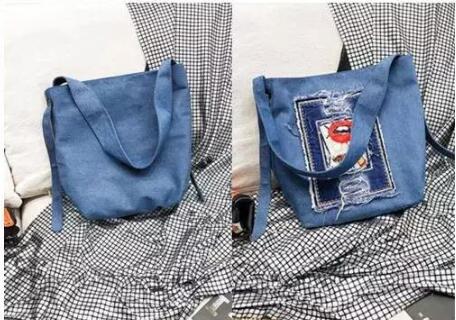 最后要推荐的是非常有文艺范的牛仔帆布包,这件容量非常大的牛仔帆布包设计上很独特,图案是个性又时尚的口红和唇印,带子可以自由调节,出门非常方便,可以装上很多东西,出去旅游也方便携带,拍照拿来凹造型也是很适合的。
