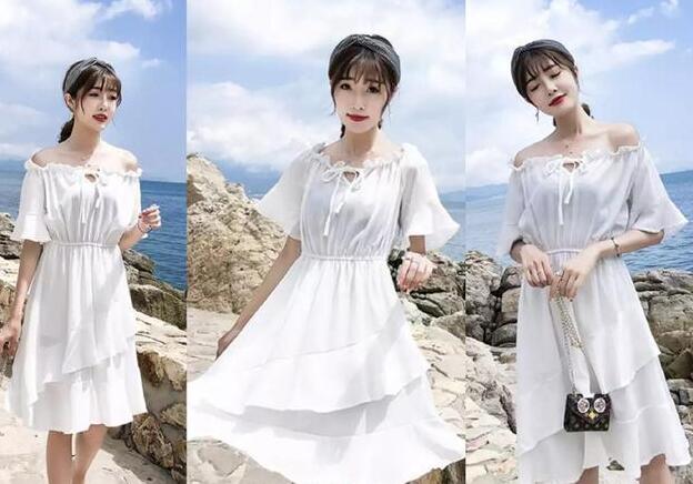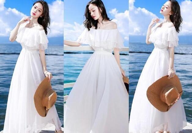 这么好的天气,当然就是要去沙滩旅游了,外出就是穿搭得美美的,选择今年流行的一字肩白色雪纺连衣裙,就很仙美feel,高腰的设计轻轻松松就可以秀出你的小蛮腰了,展现出完美的好身材,特别适合穿出沙滩旅游,各种凹造型各种美哟~