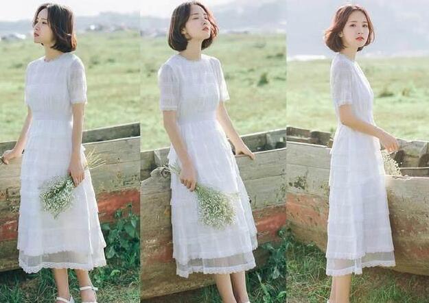 同色系的穿法是不会出错,同时还可以穿搭得很美,那么选择这款蕾丝连衣裙,是薄纱的材质设计,穿上实在是太有仙美feel,带着仙气灵动的白色,突显随性的魅力,再搭配同色系的镂空凉鞋,这样搭就可以很完美形象的凹出来淑女look,简直就是仙气扑鼻的程度,更仙美了。2019很流行的白色连衣裙款式