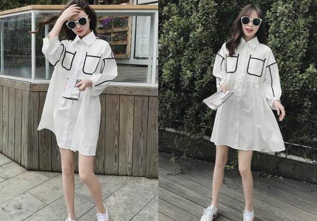 不管是在夏季,还是春季,白色的衬衫连衣裙都是很流行的,这一件充满港式味道的白色衬衫连衣裙,宽松的版型,穿上身太遮肉显瘦了,上半身胖的人都很适合穿,脚下配上这么一双白色运动鞋,炒鸡舒适时髦的,这个春夏季最流行穿呢。女装搭配。