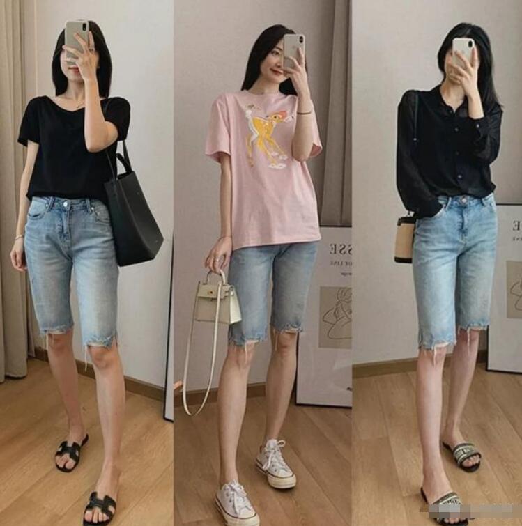 在去年夏季,牛仔中裤就着实的火了一把,直到今年夏季,牛仔中裤的热度依旧不减。牛仔中裤同样是一款特别百搭的单品,同时也是一款充满时尚感的单品,即便是搭配多普通的上衣都能够穿出特别时尚的感觉。但是牛仔中裤对身材的要求会更高,只适合高高瘦瘦,腿特别修长纤细的女生去选择,腿短的女生就不要轻易去尝试了,穿起来会显得腿更短。