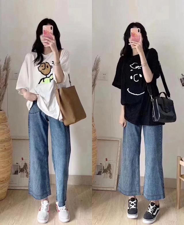 微喇元素在这几年很流行,宽松的设计让你穿着的时候更加惬意舒适。牛仔这种经典的面料搭配微喇设计,不但时尚而且还很百搭。一件设计简洁的上衣就可以穿出时尚感,极简风格还很有气质,让你看起来减龄但是不稚嫩。有卡通元素图案的T恤,可以在春天当打底,穿出一种可爱的风格,外搭毛衣和各种外套小上衣都是极好的。