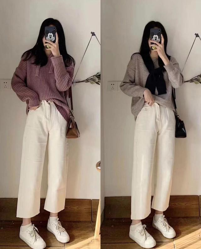 宽松的针织毛衣不但保暖效果非常好,运用各种不饱和颜色,还能给人一种仙气满满的感觉。简洁设计的毛衣加入不同的针织元素,能够延伸出不同的气质和风格。随意一条宽松舒适的裤子就能够让你看起来很清新有气质。在搭配上也有一个实用的小技巧,就是鞋子和裤子同色系,穿出显高的感觉来。