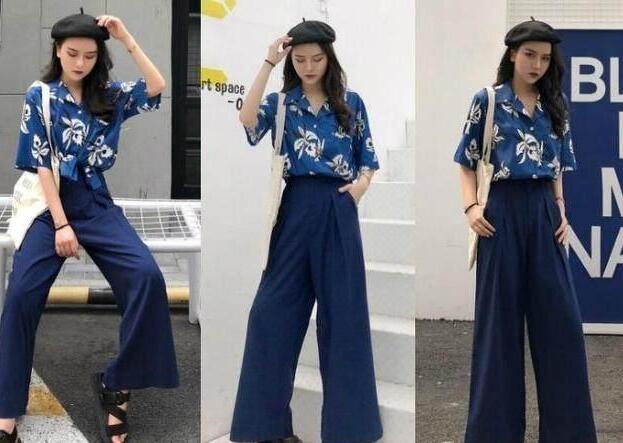 印花衬衫配阔腿裤,让你一整夏都美美哒~你看这一套搭配如何?是不是特别个性有范?蓝色短袖印花衬衫,下摆随便扎起来,这样不仅很好拉长了身材比例,还显得下半身修长,搭配蓝色阔腿裤,穿上后能够巧妙的帮我们遮住臀部和腿部多余的肉肉,拉长腿部线条,腿粗也不怕了,显瘦又超显腿长。