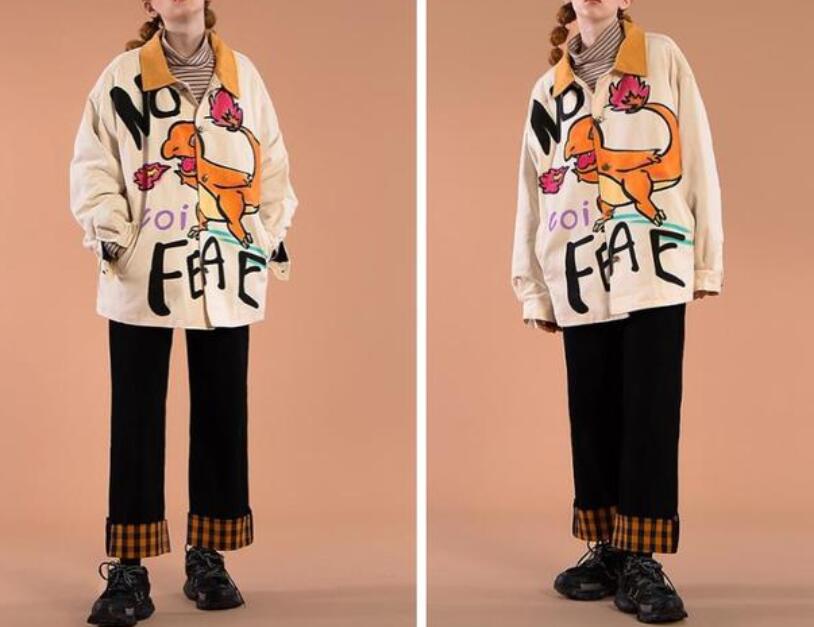 喜欢中性风假小子的穿搭风格,这套很方便大家作为参考哦,条纹针织衫+拼接直筒裤+卡通外套的搭配,看起来十分随性,又不失舒适感,外套的卡通图案点缀,活跃整套穿搭的沉闷氛围,增加了吸睛亮点,也是很帅气,也是很可爱哦,飒气也是很具备的呢!