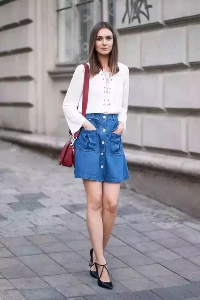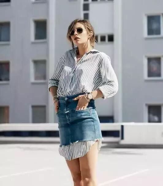 牛仔半裙也算得上是人手必备的衣橱必备款之一,但要想讲究高段位,门道并不少。下面小编就来介绍几类单品和牛仔半裙的穿搭,舒适的同时又能保障颜值,赶快Get几招为己所用吧!【衬衫+牛仔半裙】今年最流行的莫过于衬衫与半裙的叠穿,关键在于衬衫的下摆要长于半裙长度,比裙子更多“露一截”的时髦感,分分钟稳固时尚GIRL的地位。