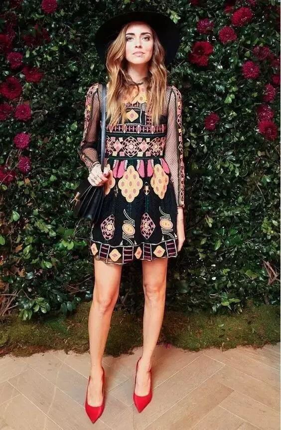 身着印花连衣裙,浪漫又优雅,这个一年四季都适合的单品,妹纸怎么可以不入手呢?选择宇博这样的黑色印花裙,让人更加意外~袖子的两侧是黑色薄纱的,遮挡手臂的同时,带着些许的小性感,也不失妩媚和优雅!印花元素还可以选择刺绣的做法,精致的工艺让裙子单品瞬间提升一个等级,更显高贵高档哦!
