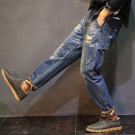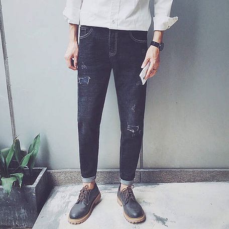 小脚裤的版型,微微掉档,日系风格的哈伦牛仔裤,非常的百搭,穿起来很舒适,上身不管搭配什么衣服都合适,上身效果很棒。个性的破洞元素,将你张扬的性格演绎的淋漓尽致。