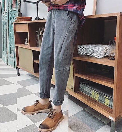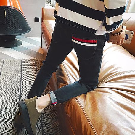 很具有复古味道一款牛仔裤,颜色看起来很具有年代沉淀感。裤子采用立体修身裁剪,个性的撞色条纹点缀在裤身,小裤脚设计上身感觉棒棒的。下面搭配一双帅气的板鞋休闲鞋都是超级帅帅的。
