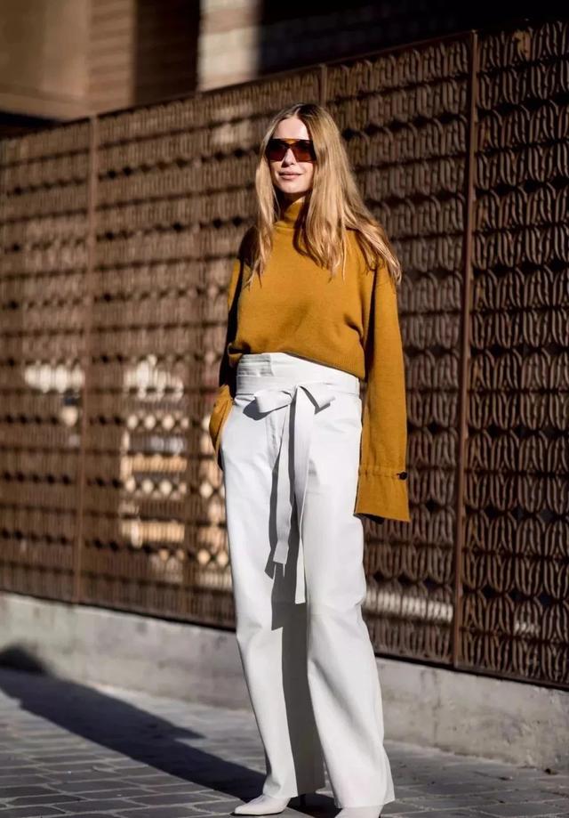 一直穿黑色也难免单调,因此更建议姑娘们多去尝试一些其他的色系,只要保持裤子和鞋子的颜色是同一个色系,且颜色之间的差别不会太明显就可以了。比如说温柔的白色系,衬得人很有气质。不过,姑娘们一定要注意避开高饱和度的颜色,除非你是冷白皮,不然一般的亚洲肤色驾驭不了这种亮色,还会显黑。
