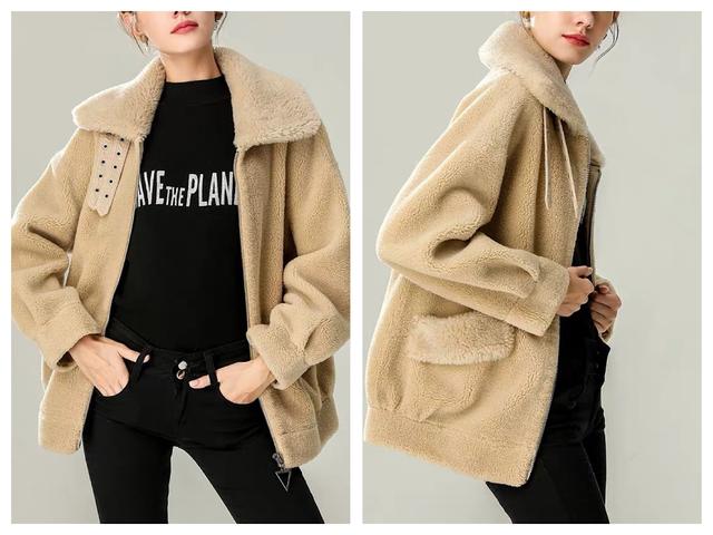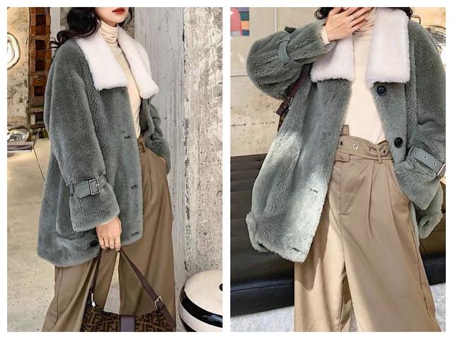除了冬天最流行的米白色和棕色两个经典色系,抹茶绿独特的色调更是吸睛。羊羔毛外套的质感,真的很舒服。衣服长度是刚好过屁股的,刚好显得腿长又细哦。