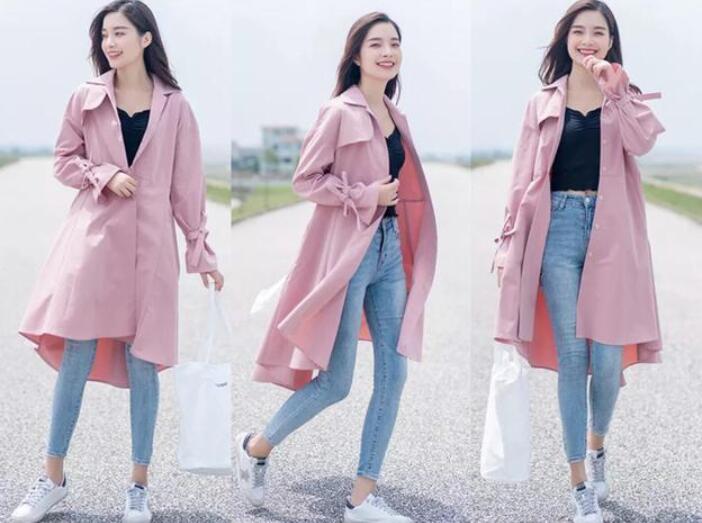风衣非常适合身材好的女生穿搭,一穿在身上,纤细的身材立马显现,粉丝系的服装也是有少女系的,毕竟每个女孩都有粉色系的公主梦,搭配一条牛仔裤,气质也会衬托出来,这样的搭配谁穿都会好看,在选择鞋子方面,最好偏向清新的小白鞋,几样组合会给人一种休闲感,也不失时髦。