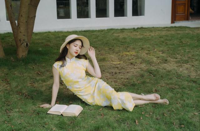 清新淡雅的黄色旗袍装,视觉上给人深度的感染,不张扬不妩媚,静静的释放着淡雅娴静的少女风情,白色的印花晕染着馨香,清丽温柔,旗袍线条柔美婉约,包裹得身姿玲珑曼妙,旗袍领端庄雅致,全开襟的设计更添古典韵味,风情的开叉神秘魅惑,将女子衬托得风情万种。