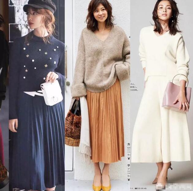 紧身打底毛衣把它塞到裙子里,还能打造高腰线,红色毛衣搭配咖啡色百褶裙显得青春有活力,灰色毛衣搭配深灰色呢子伞裙,显瘦又修身成熟女人韵味。皮粉色的外套显得人甜美有气质。