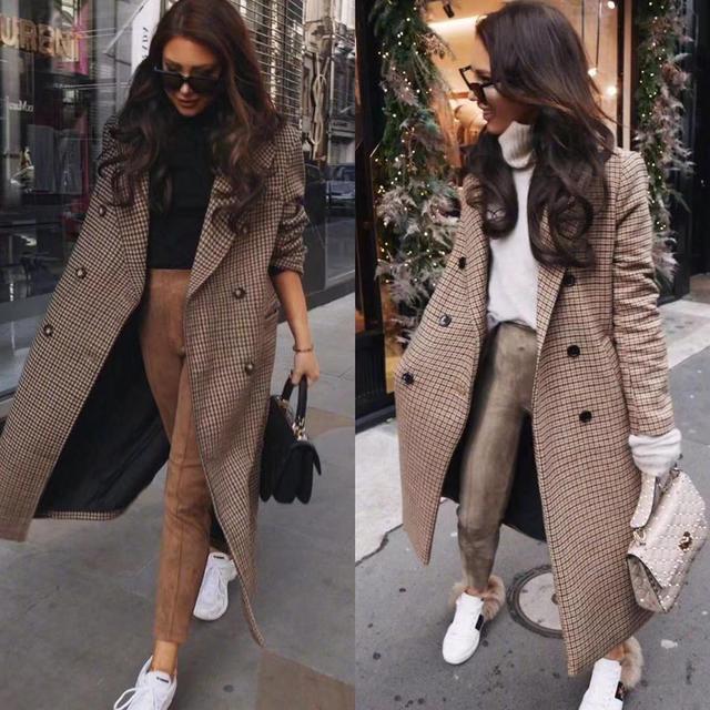 棕色格纹长大衣,内搭黑色半高领毛衣,高级时尚,穿一条紧身裤能显瘦,搭配平底鞋则是多了几分柔和感。而长大衣搭配超短裙,显瘦又显高,一双蛇纹款式的短靴,有个性又显得格外的性感。小个子女人穿长款的大衣不要长到脚面,中长的长度就最好不过了,最好能露出脚踝的长度,这样看上去更显利落和气场。158小个子适合穿长大衣吗?