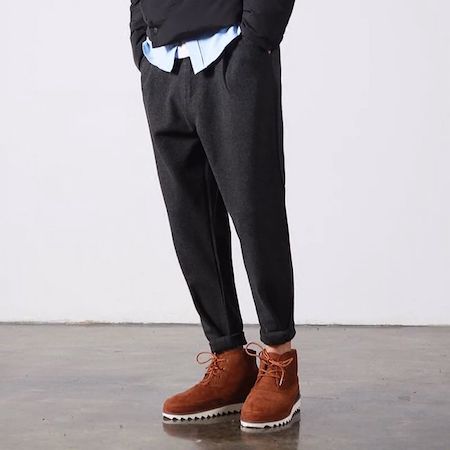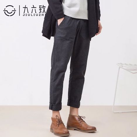这是一款非常简约的纯色呢料休闲裤,冬天的温度比较低,毛呢的面料会更加的合适,裤子的版型很好,小脚的裤型不会太臃肿,剪裁跟拼接的走线都很到位,上身效果极佳。