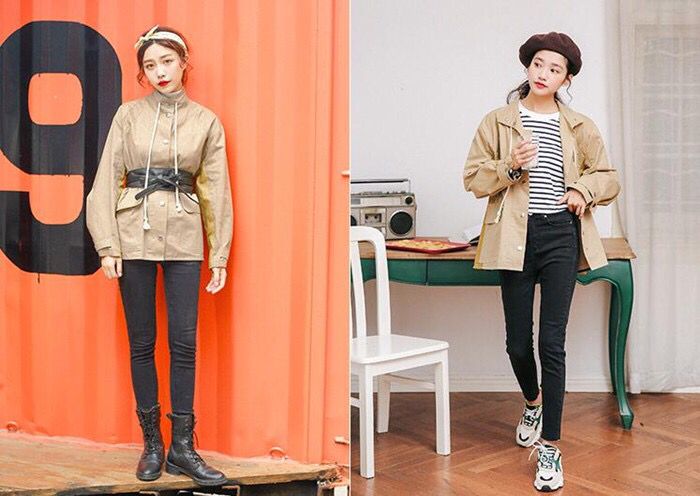 想走帅气路线的,看这里。首先准备上一件风衣外套,经典卡其色百看不厌,帮助你稳稳站在时髦链顶端一百年不动摇。