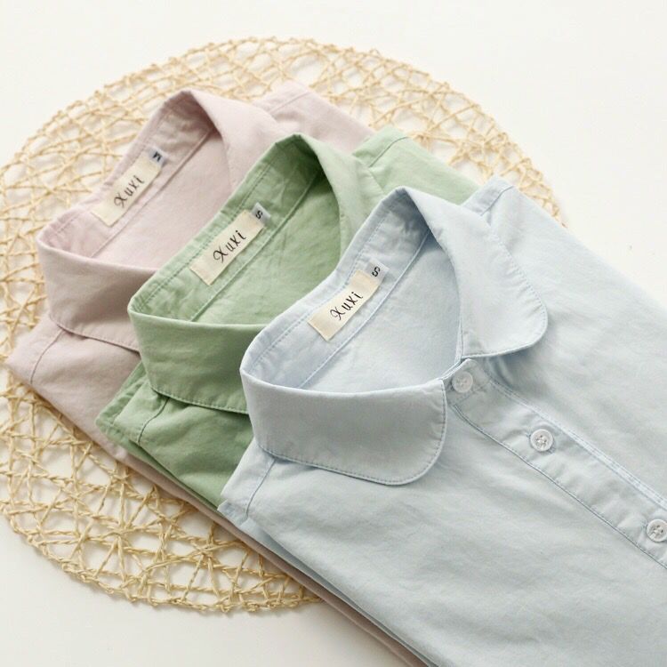 清一色的衬衣,十分自然女神,搭配娃娃领更是增添了几分可爱俏皮,不管是单穿还是内搭,都是衣橱神器哟。四种颜色都是十分小清新的哟,文艺青年还不快穿上去踏春约拍!!