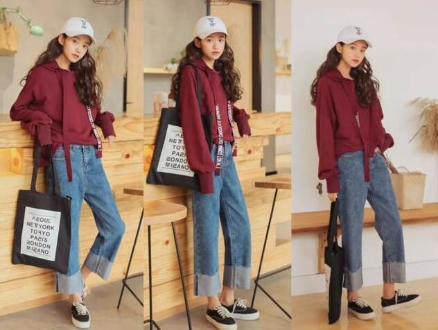 2019年最流行的九分牛仔裤,还是百搭又不会过的牛仔面料,所以上身不仅时尚,还带着点帅气感,直筒的版型,更好地修饰腿型,显得笔直又瘦,九分的裤长,加上翻折的设计,看上去满满的造型感,轻松穿起来就很显高身材的,搭配酒红色卫衣真时髦,尽显青春女生气质,减龄妥妥的。