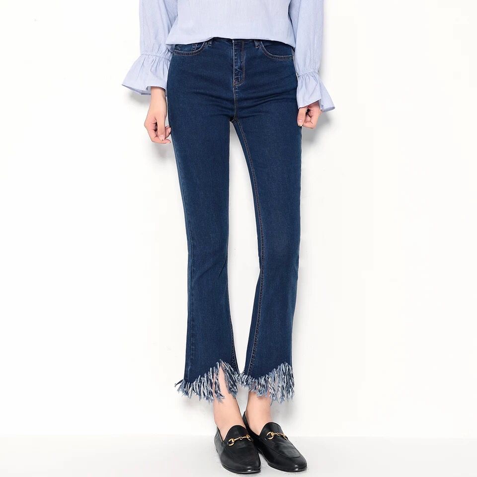 经典的回潮的喇叭裤设计,回顾风靡的猫王所带来的时尚体验。参差不齐的毛边设计回归原始,个性味十足。搭配衬衫时可以把衣角塞进去会更显腿长。