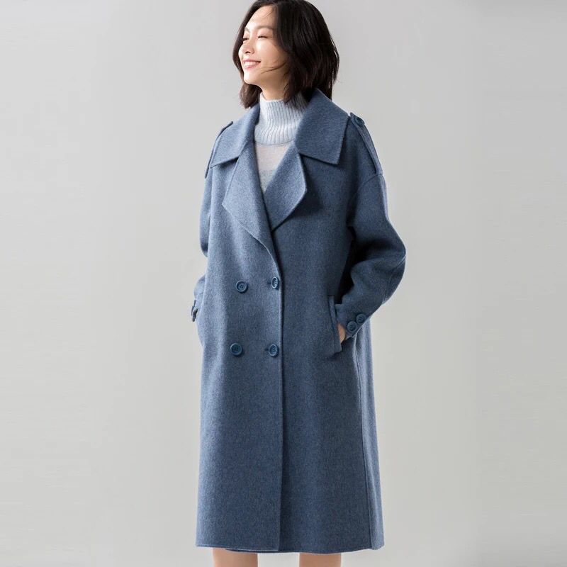这件大衣采用全羊毛双面呢材质,轻薄而保暖,面料有挺度,你面平整顺滑,舒适亲肤。手工缝制,在内外都看不到任何缝线,令大衣更顺滑平整,质感精致。复古双排扣,透露着文艺知性的气息。