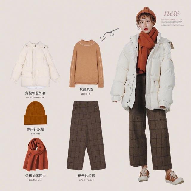 很喜欢这种宽松版型的棉服,超级暖暖和不说,有点廓形设计遮肉显瘦,搭配毛衣+格子休闲裤,很有文艺气质~颜色上的搭配,也很经典,是比较不容易穿错的look,各种肤色、身材的女生都可以很好地驾驭,且减龄效果超级好。