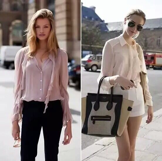 A、最简单的就是穿设计简洁的白色无痕T-shirt Bra,还有假装看不出穿了内衣的肉色无痕Bra。这个方法适用于那些不至于薄如蝉翼的衣服,太透的就不行了。而且一定要无痕。。无痕。。无痕。。像肯豆这样穿注意力全在内衣痕上了~黑色Bra基本上可以用作所有衣服的打底。但是也会偶尔听到有人觉得白衬衫搭配黑色bra很Low,小编觉得应该在于没有选对Bra。一旦选对了,照样美啊。平胸穿会更美。