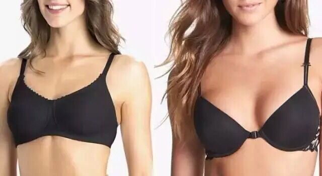 那什么样的黑色Bra才是对的呢?首推T-shirt Bra,或者是底部是平直设计,上沿也偏平直的 Bra,光面无痕的Bra。它们不会完全衬托出胸型,露肉少。对比下,选左边而不是右边。当然如果你想国外一些女性一样更加注重的是大胆的性感和身材的外露,也许就不用这么注意了。
