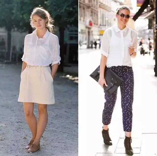 B、传统的穿法是在里面穿上一件白色的吊带背心。适合着装要求严格的办公场合。不过这种穿法只能保证你不出错,谈不上有啥时髦度。关键还热啊。就算穿背心,也不要选白色老头背心啦。如果再像右边这样露出黑色肩带,实在是槽糕。