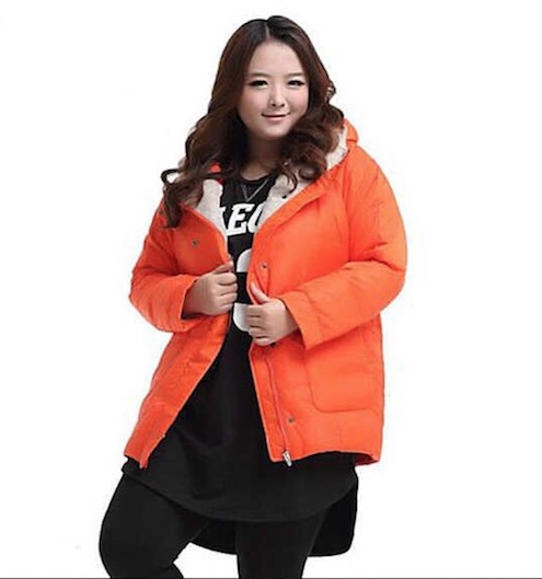 胖妹妹冬装棉服:3D立体剪裁,直接挂在人体模特塑形上进行裁剪与设计,做到了比例美,对称美,呼应美,节奏美等。内搭黑色打底衫,打底裤,原来胖MM也可以美丽动人。